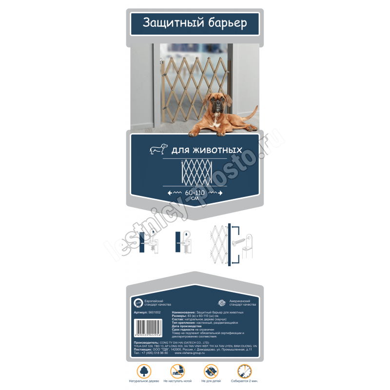 Барьеры безопасности и ограждения для животных необходимы для того, что бы закрыть животному выход из комнаты или ограничить доступ в некоторые из них. Механизм крепления барьеров безопасности прост и надежен. При помощи барьеров безопасности или защитных ограждений можно перекрыть практически любой размер проема, будь то дверь, арка или выход на лестницу.