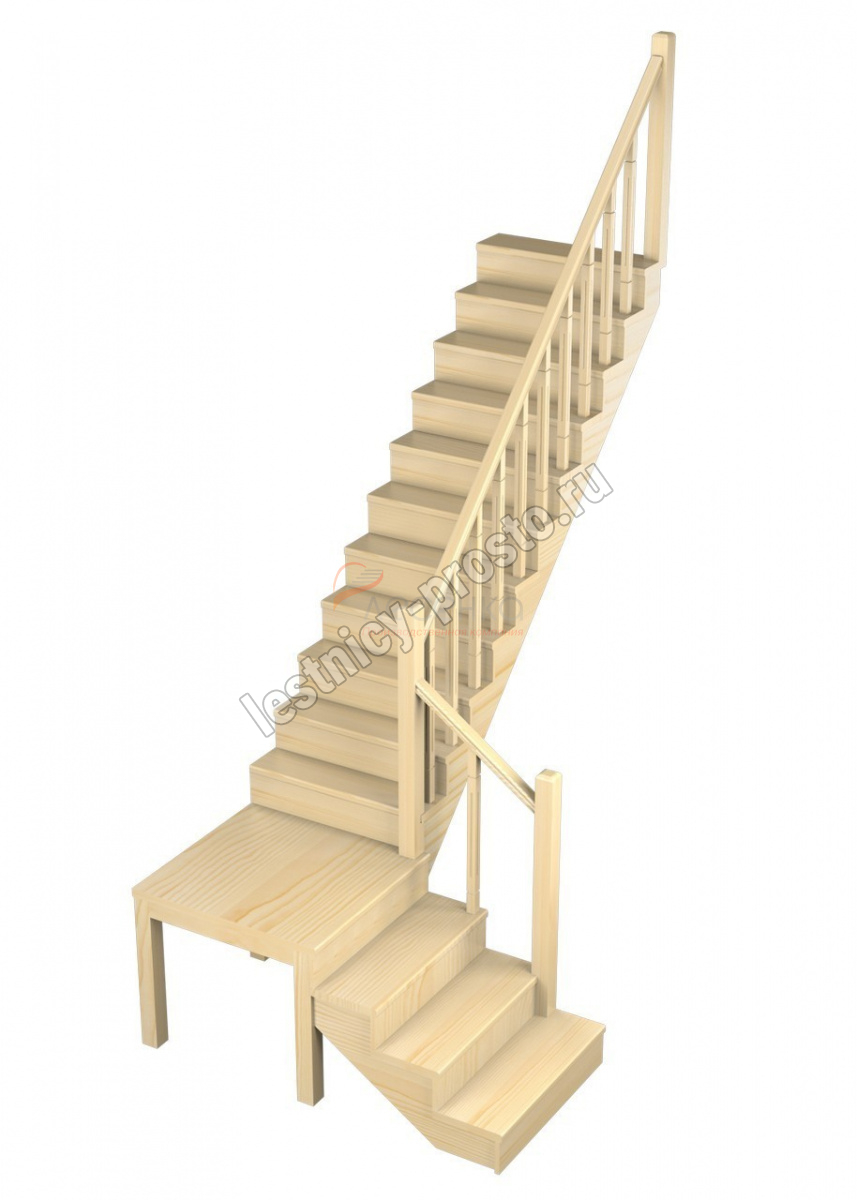 Деревянная межэтажная лестница ЛЕС-08, Лиственница с подступенкой