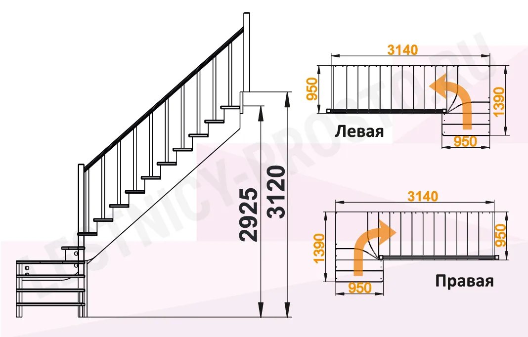 Высота лестницы 2925 - 3120