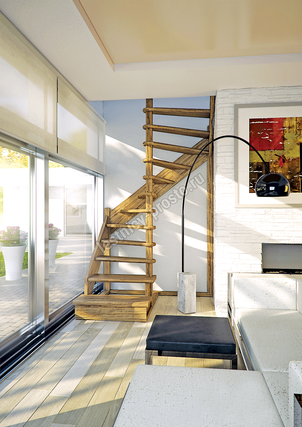 Базовый комплект включает в себя деревянные элементы лестницы без какого-либо покрытия.