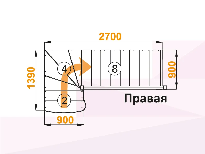 Лестница К-001М/1 с поворотом направо