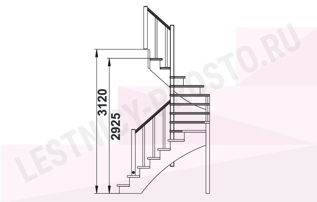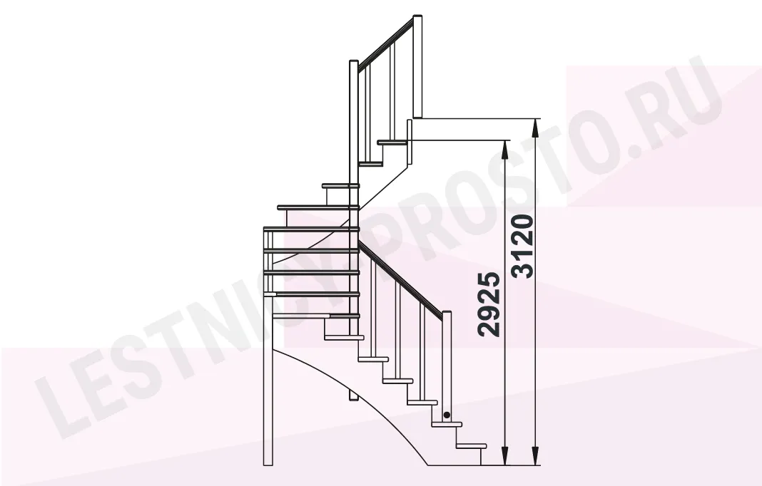 Ступени и поручень изготовлены из бука, остальные элементы лестницы из сосны.