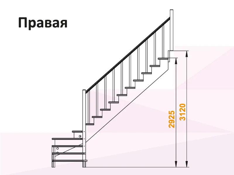 Ступени и поручень лестницы изготовлены из дуба, остальные элементы из сосны. Возможно изготовление модели полностью из дуба. Базовый комплект включает в себя деревянные элементы лестницы и ограждения без какого-либо покрытия. Вы можете заказать у нас покраску лестницы в цвета, отвечающие особенностям вашего помещения.