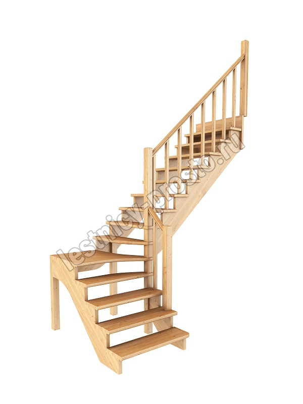 Базовый комплект включает в себя деревянные элементы лестницы и ограждения без какого-либо покрытия.