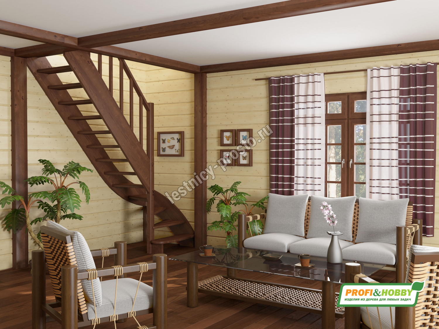 Лестница из сосны ЛС-07М/2 с подступёнками под покраску