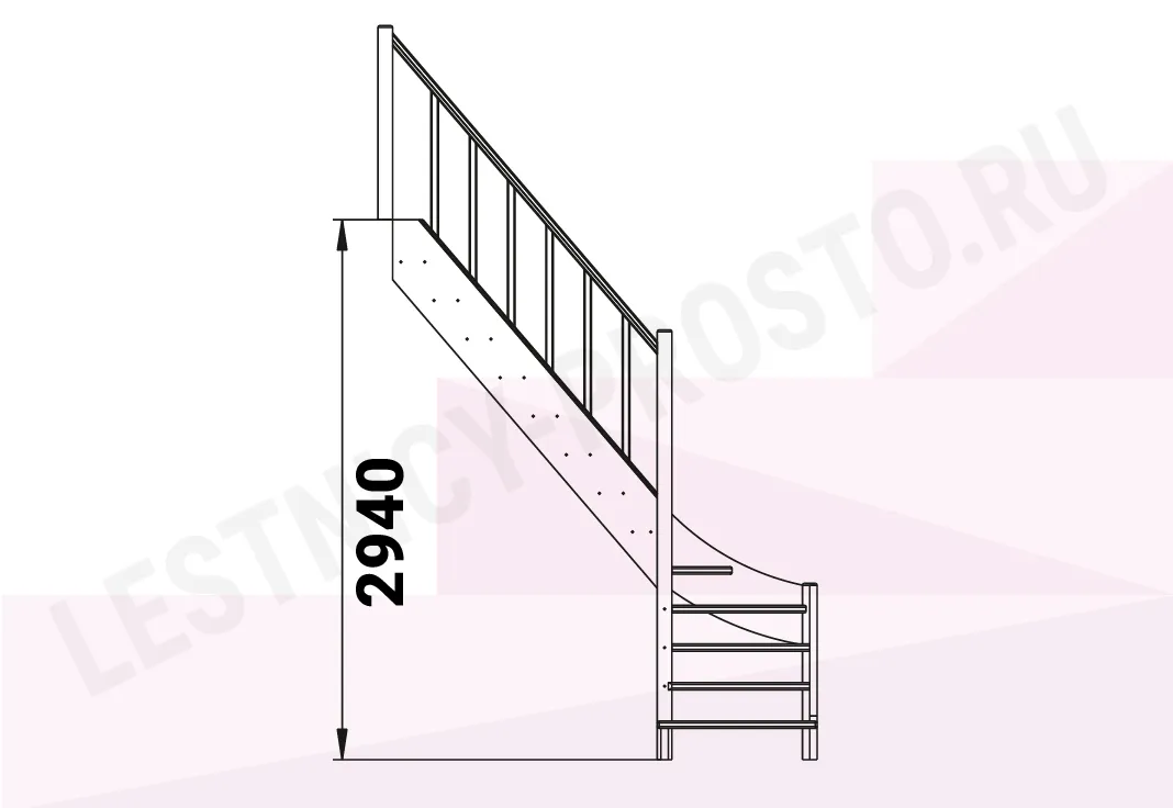 Базовый комплект включает в себя деревянные элементы лестницы с подступёнками и ограждения без какого-либо покрытия.