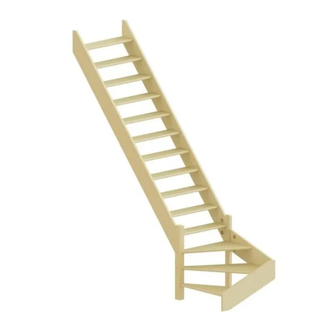 Базовый комплект включает в себя деревянные элементы лестницы и ограждения без какого-либо покрытия.