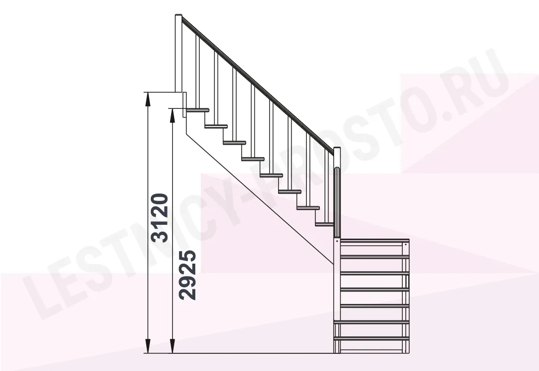 Базовый комплект включает в себя деревянные элементы лестницы и ограждения без какого-либо покрытия.