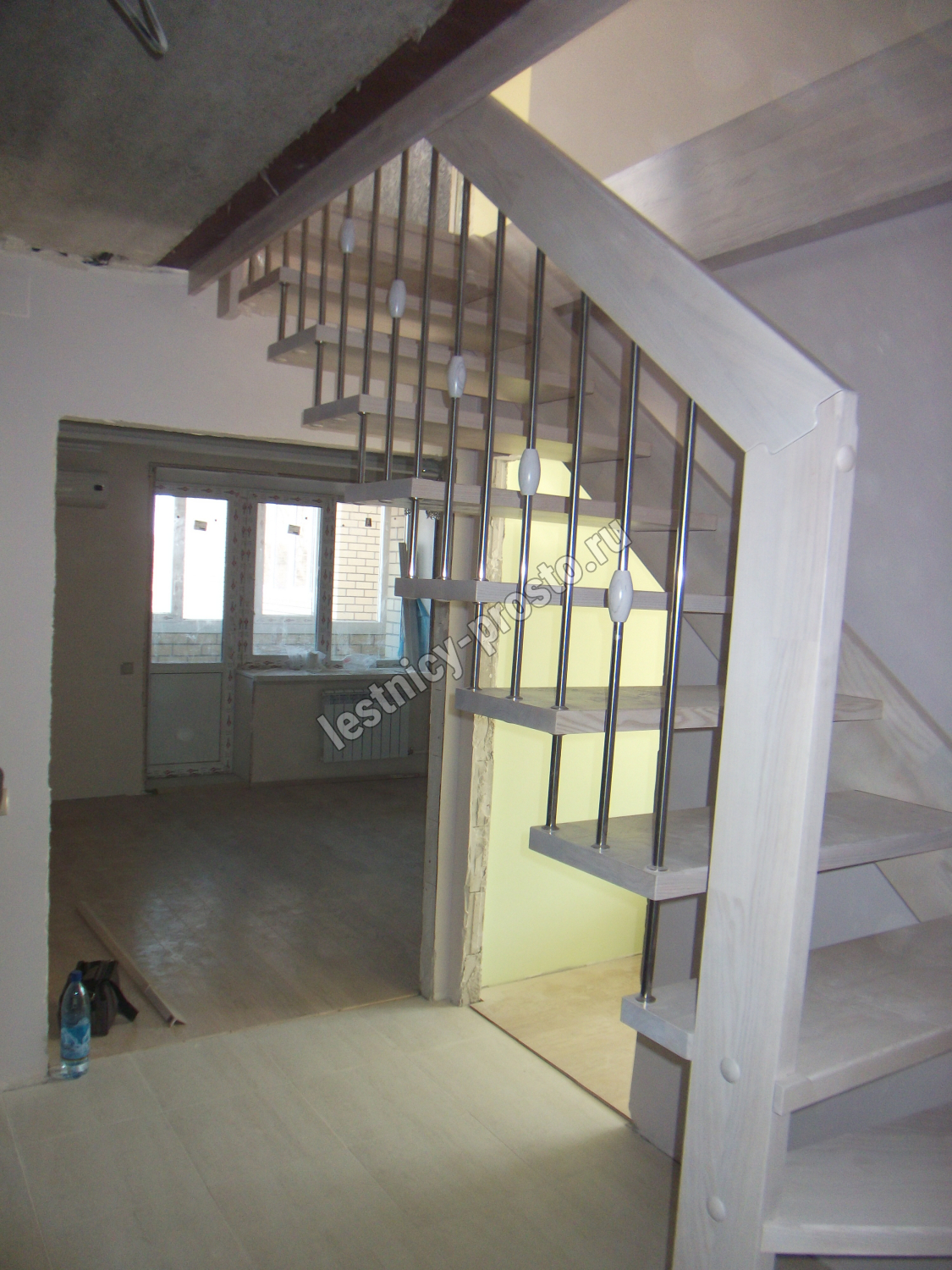 Надёжная современная лестница выполнена по немецкой технологии. Стоимость указана для лестницы с ограждением (с одной стороны); Поставляется в разобранном виде, в комплекте необходимый крепёж; Лестницу можно собрать самостоятельно; Так же, вы можете заказать услугу монтажа нашими специалистами; 4 вида породы дерева для изготовления лестницы: сосна, бук, ясень, дуб; возможна комбинированная лестница: из сосны (ступени бук, ясень, дуб); Деревянные элементы без какого-либо покрытия, отшлифованы, готовы к покраске. За дополнительную плату, вы можете изменить любые параметры, а именно: увеличить глубину ступени; увеличить ширину марша до 900 мм. и выше; заказать подступенки к лестнице; заказать отделку перекрытия (между 1-м и 2-м этажами); изготовить дополнительный промежуточный марш; заказать ограждение 2-го этажа; покраска в любой цвет или несколько цветов или покрытие защитными средствами; дополнение балясины из нержавеющей стали деревянными элементами; покраска балясин из нержавеющей стали порошковой краской в цвет RAL.