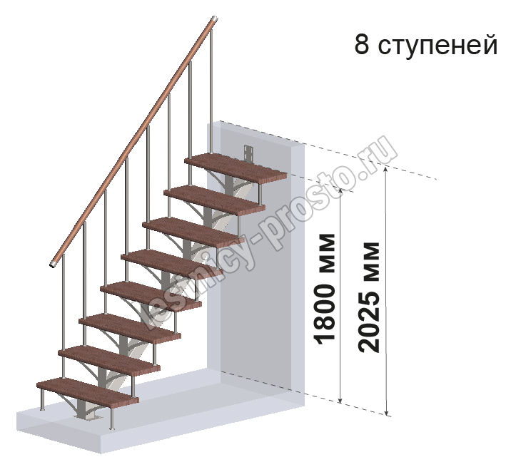 Комплект для лестницы на металлокаркасе PROSTO MONO из 8 ступеней.