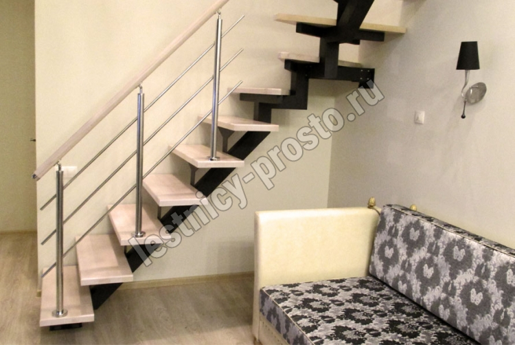 Комплект ограждений для П-образной лестницы PROSTO MONO из 9 ступеней.