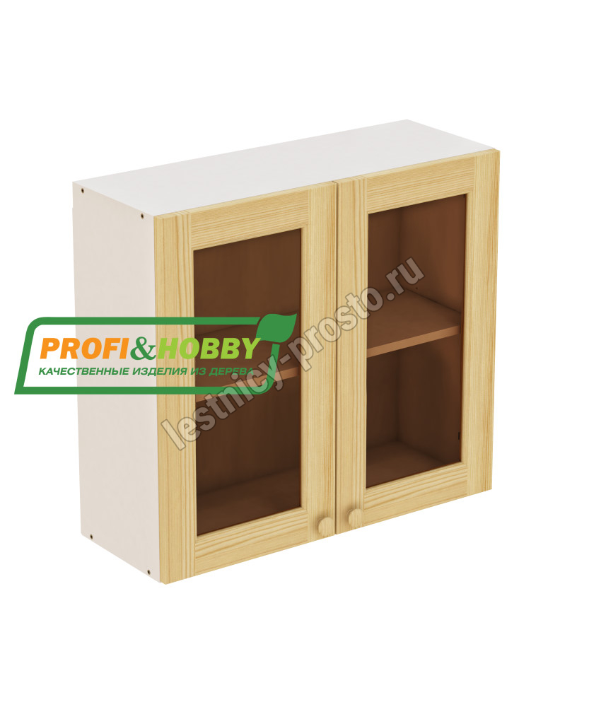 Шкаф навесной 2 двери 800х340х720 + фасад сосна под стекло без покраски
