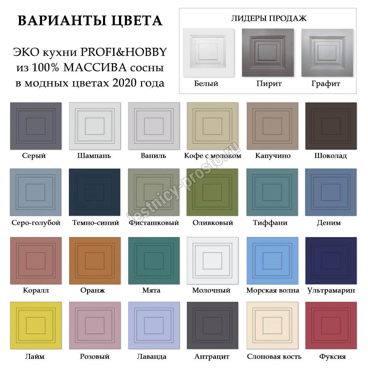 Компактный кухонный гарнитур из 100% массива сосны шириной 1,2 и высотой 2,32 метра (верхние шкафчики 90 см). Подойдёт для небольшой кухни, квартиры-студии или загородного дома. Цвет на выбор - 27 вариантов (при заказе кухни в нашем интернет магазине просьба указывать название цвета в комментариях).