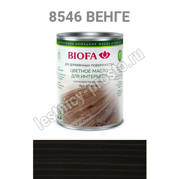BIOFA Color-Oil For Indoors - не содержащий растворителей продукт, состоящий из высококачественных биомасел и восков. Используется для придания цветового оттенка поверхности древесины и в качестве износостойкого покрытия для мебели, лестниц и всех видов деревянных напольных покрытий, пробки.