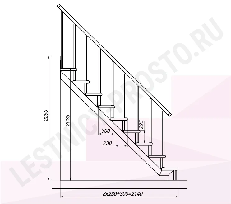 Лестница PROSTO MONO прямая, h225 см, ступени бук