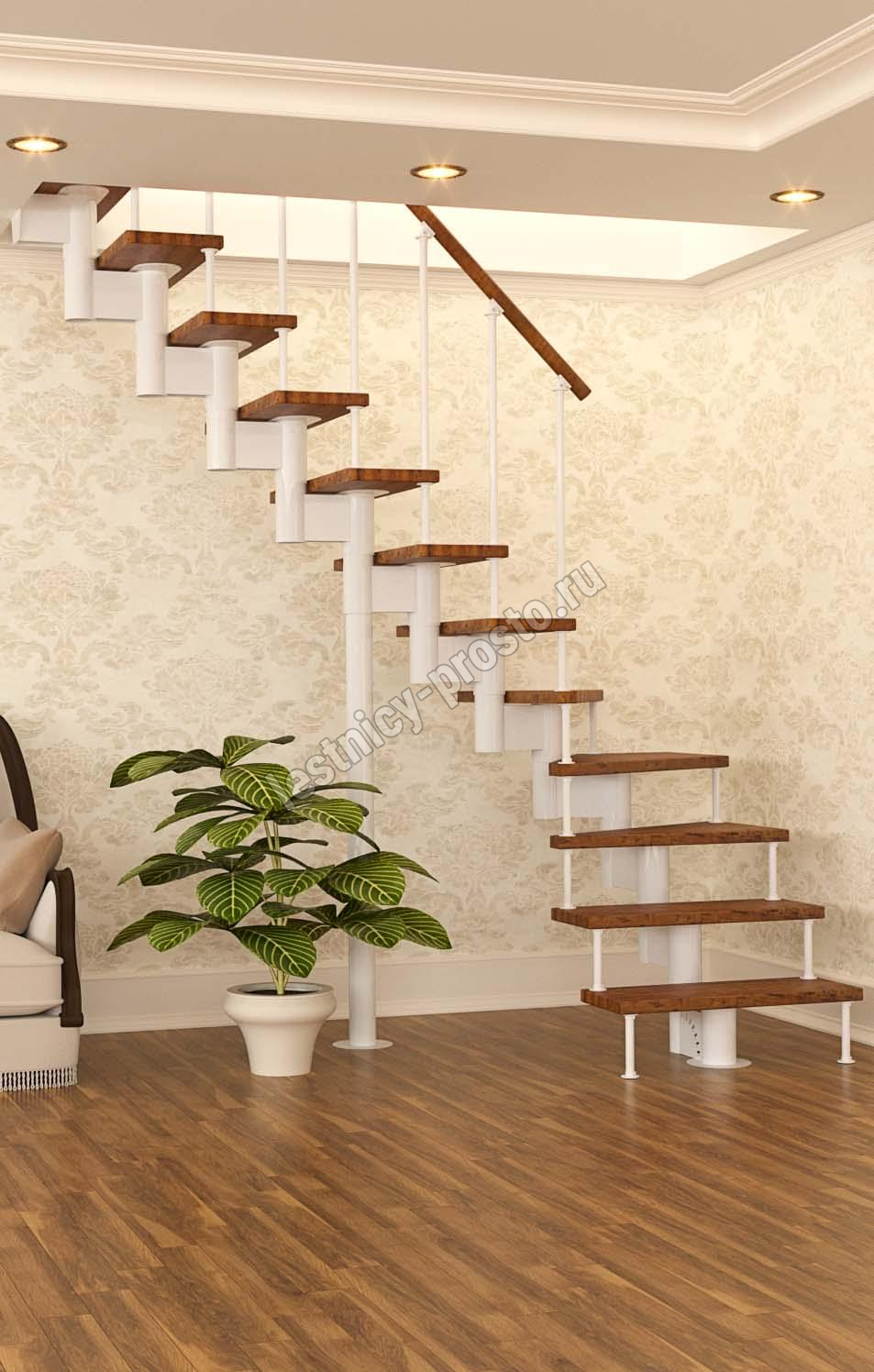 Модульная лестница PROSTO MODULE Г-образная, h270, лиственница