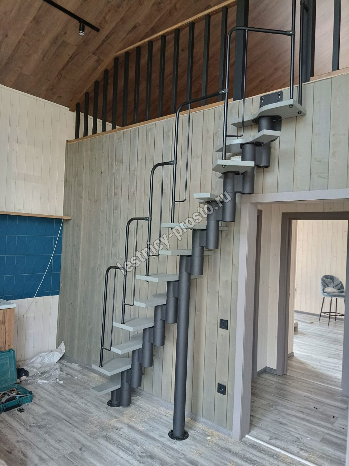 Лестница Prosto Urban Black гусиный шаг 700 мм, h180-264 см (10 ступеней), бук