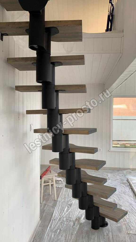 Лестница Prosto Urban Black гусиный шаг 700 мм, h180-264 см (10 ступеней), дуб
