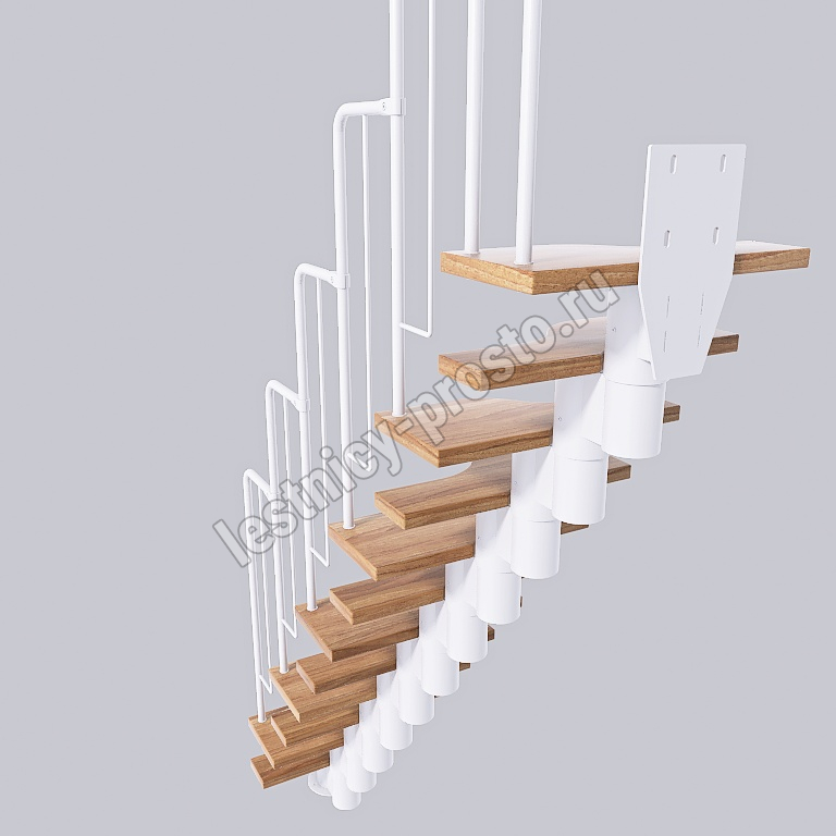 Лестница Prosto Urban White гусиный шаг 600 мм, h234-336 см (13 ступеней), берёза мультиплекс