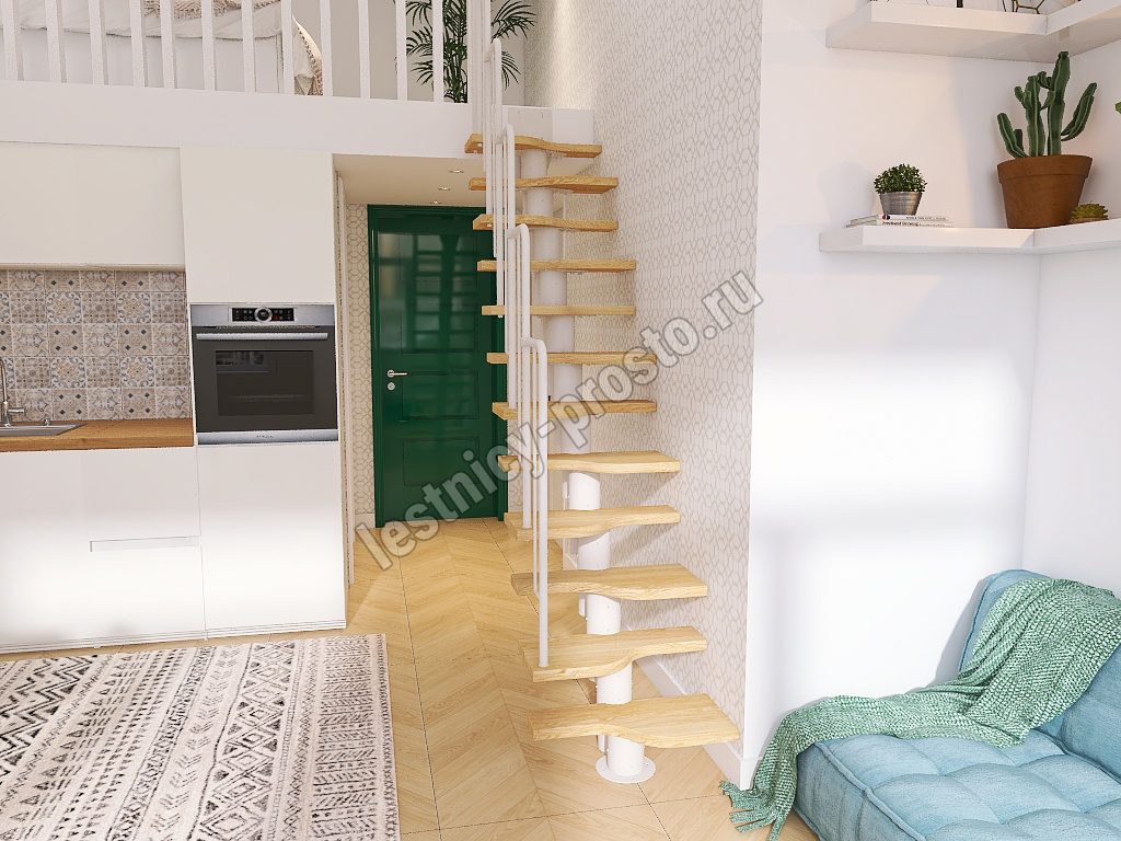 Лестница Prosto Urban White гусиный шаг 700 мм, h234-336 см (13 ступеней), берёза мультиплекс