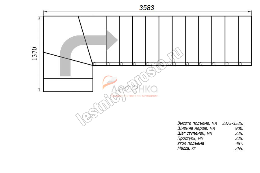 Модульная лестница Фаворит 225 3375-3525, Белый, Сосна, Крашеная