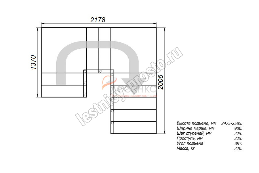 Модульная лестница Комфорт 225 2475-2585, Серый, Лиственница, Крашеная