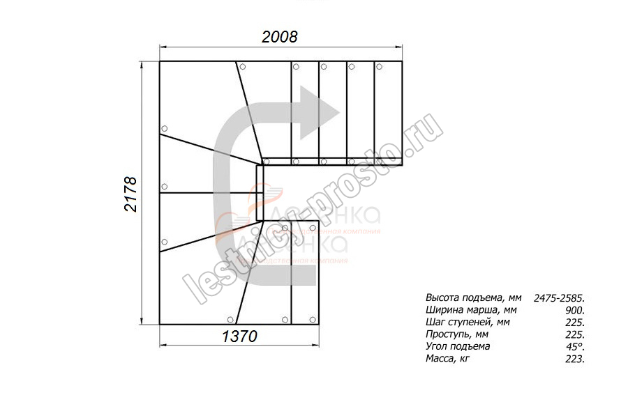 Модульная лестница Спринт 225 2475-2585, Серый, Сосна, Нержавеющая сталь