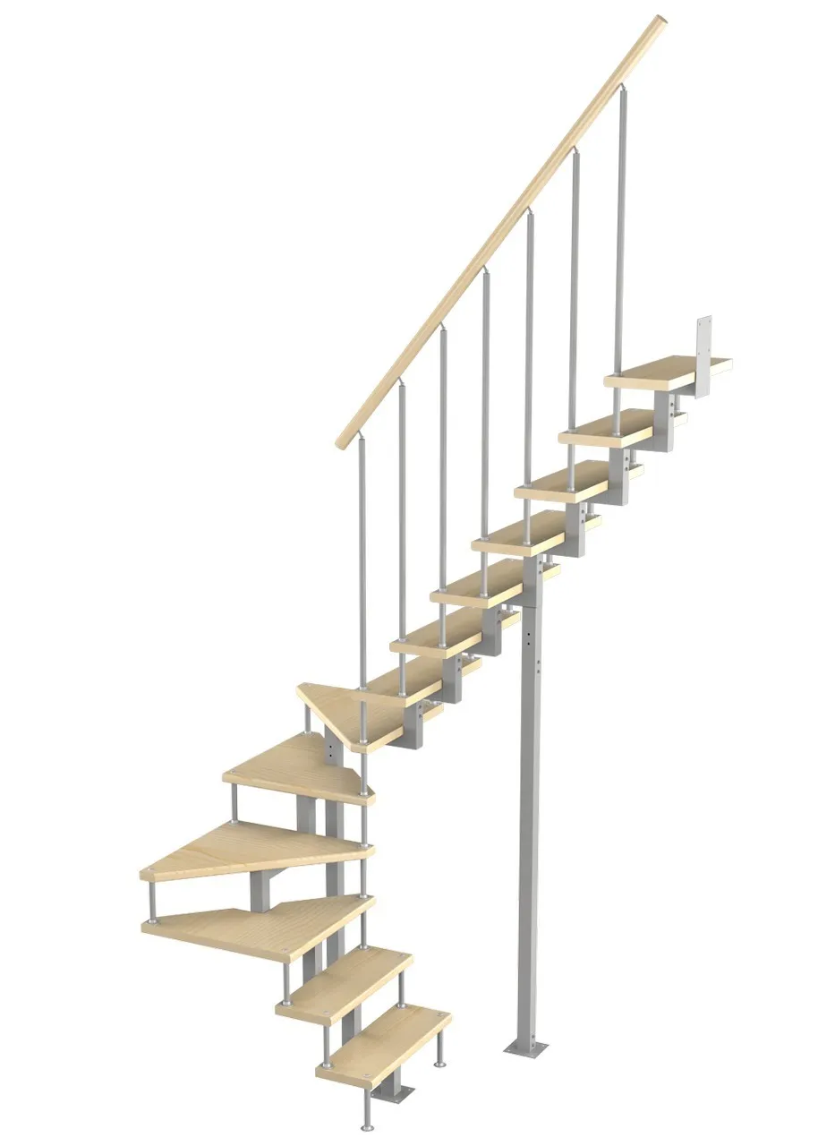 Модульная лестница Стандарт 2250-2350, Серый, Лиственница, Нержавеющая сталь