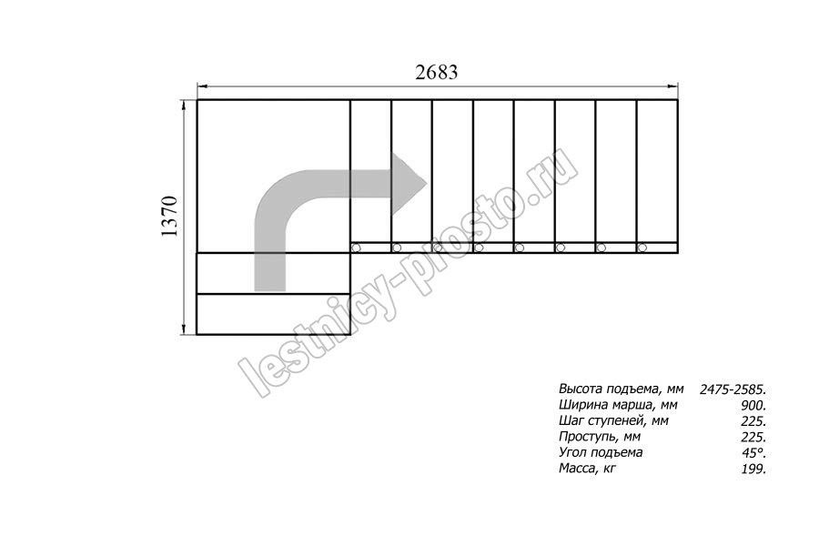 Модульная лестница Статус 225 2475-2585, Серый, Бук, Крашеная