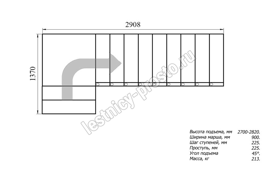 Модульная лестница Статус 225 2700-2820, Белый, Бук, Нержавеющая сталь