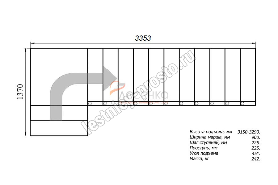 Модульная лестница Статус 225 3150-3290, Черный, Сосна, Нержавеющая сталь