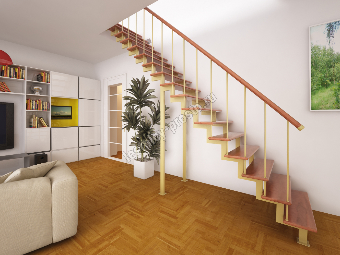 | Лестница Prosto Due 40×80 прямая, ступени лиственница |