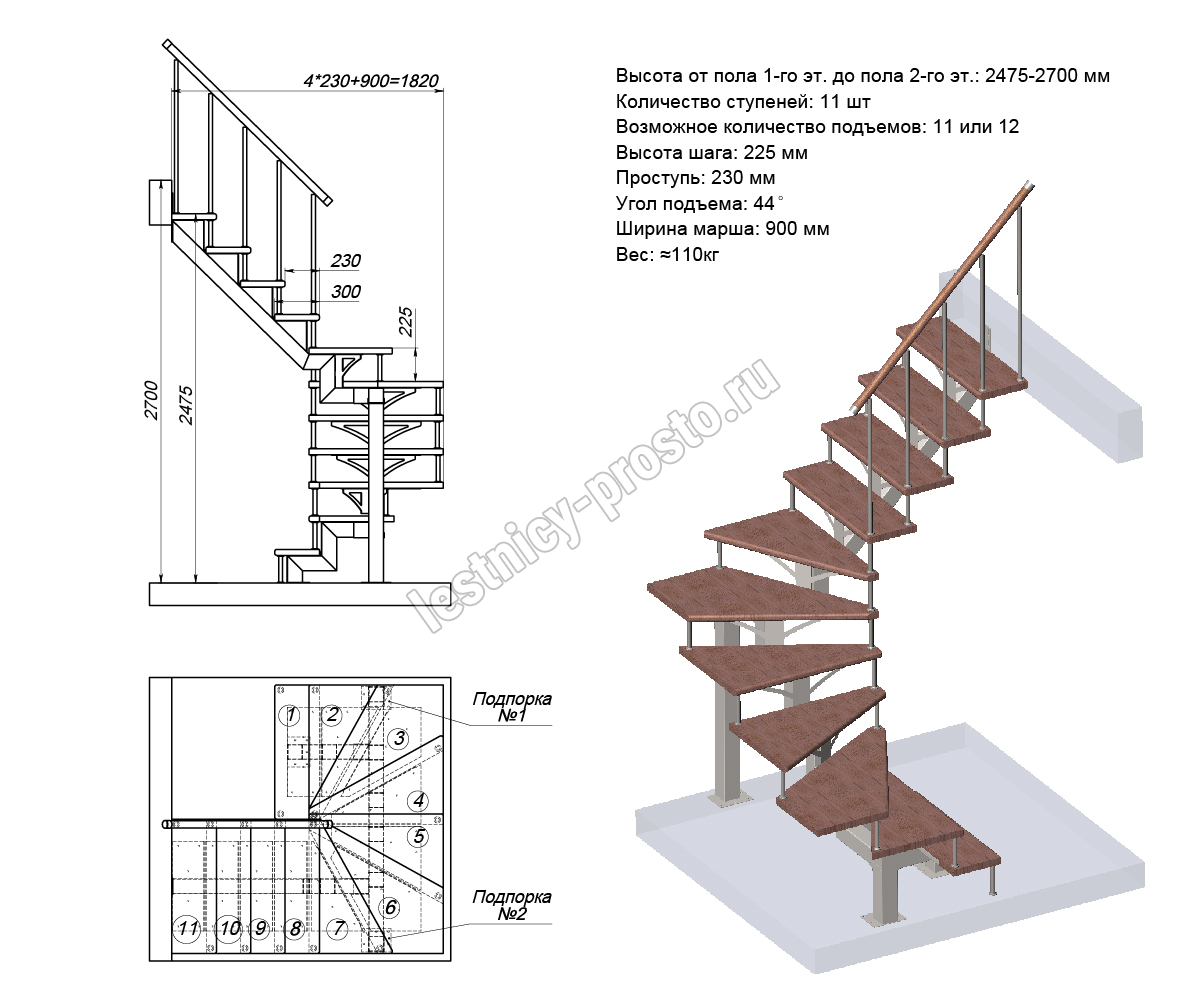 Под заказ возможно изготовление каркаса лестницы PROSTO MONO с поворотом начинающимся с любой ступени, а также, возможно реализовать поворот через площадку. Звоните нам по любым возникающим вопросам, мы поможем сориентироваться и сделать правильный выбор.