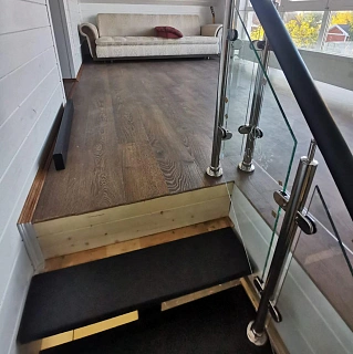 Лестница из стекла/дуба/керамогранита с подстветкой LP-1-53