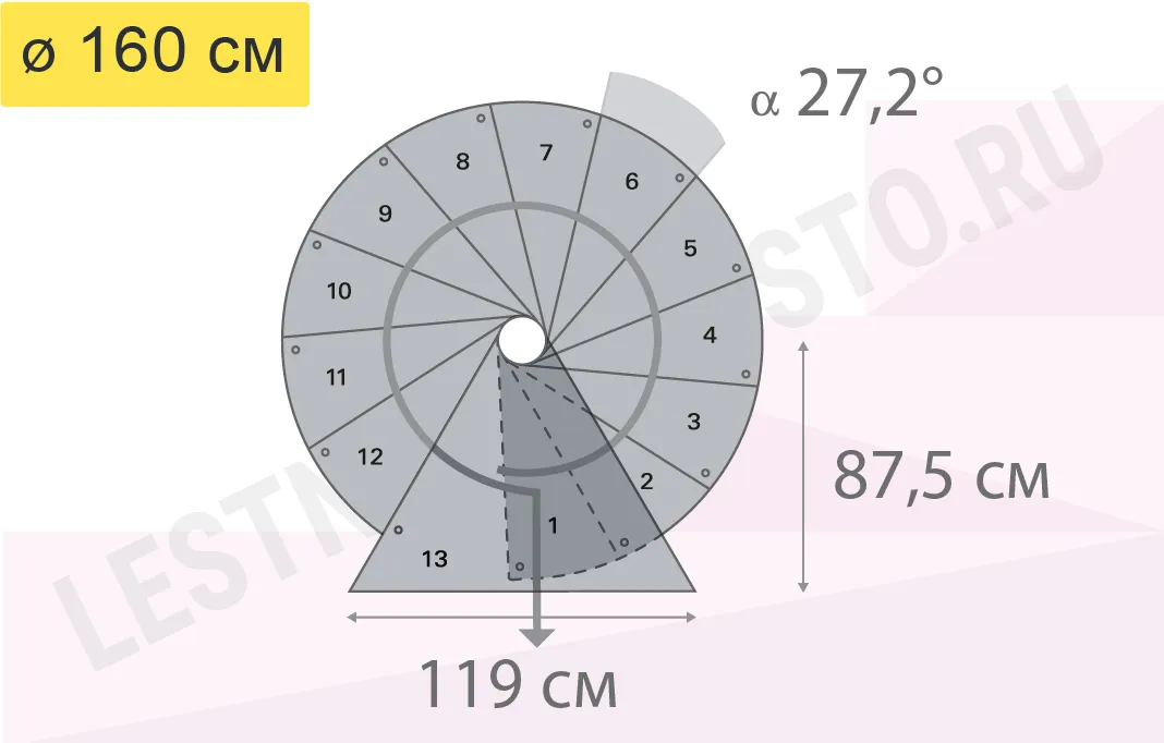 Высота лестницы регулируется при сборке в пределах 2530 - 3060 мм. С помощью дополнительных секций высоту базовой модели можно увеличить до 3770 мм.