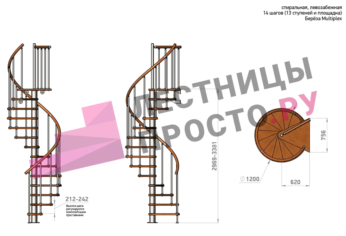 Высота лестницы 2969 - 3381 (13 ступеней) мм