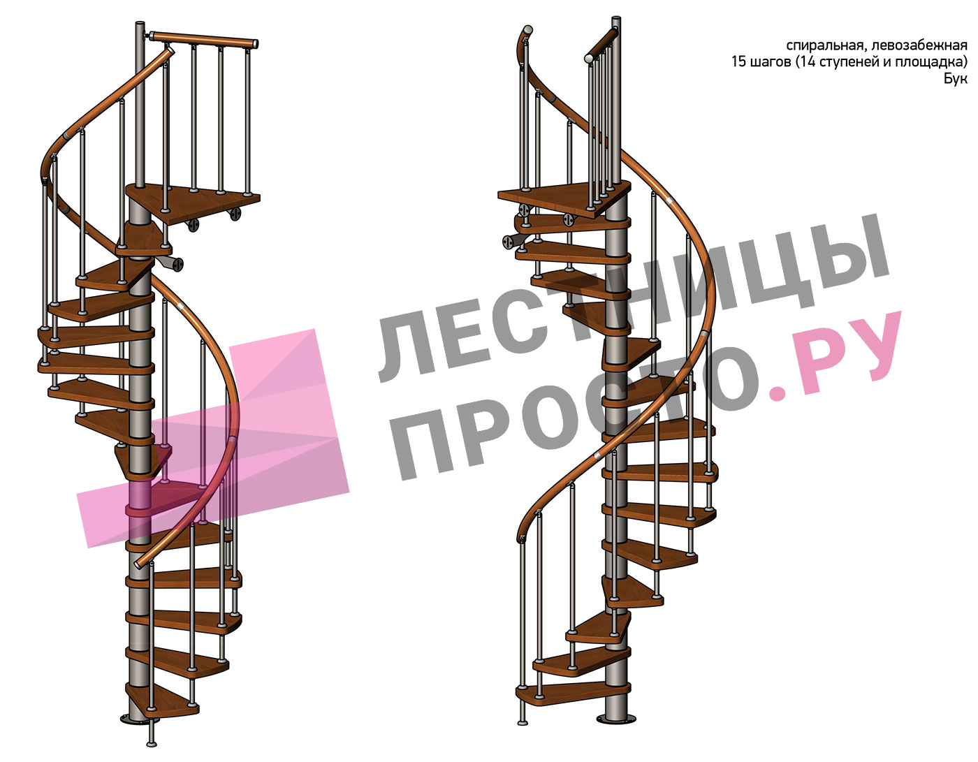 Винтовая лестница Prosto Spiral Black D120см, h325.7-369.8 см, бук