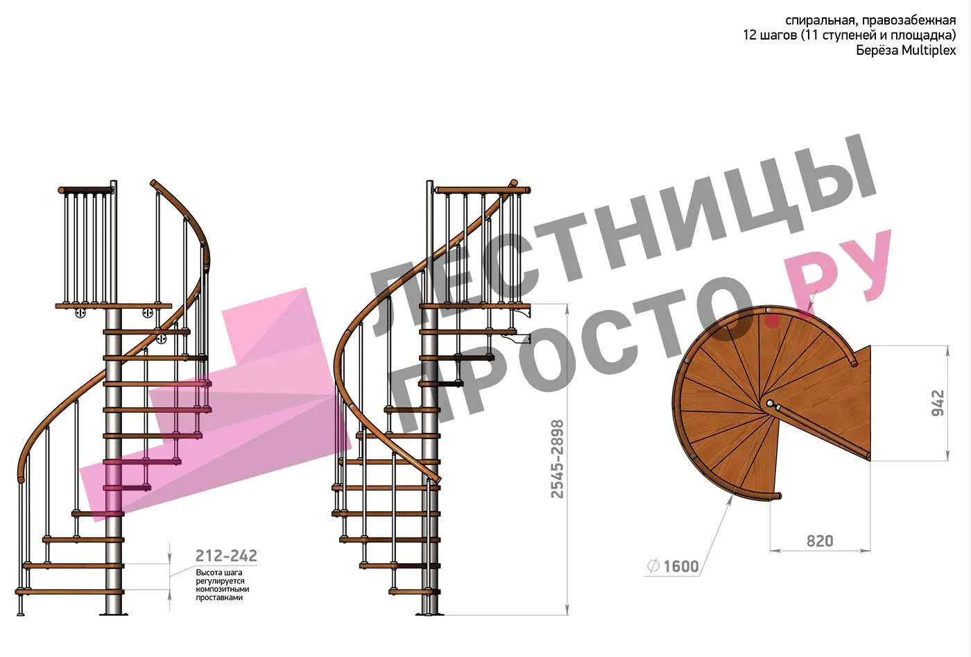 Винтовая лестница Prosto Spiral Black D160см, h275.7-313.9 см