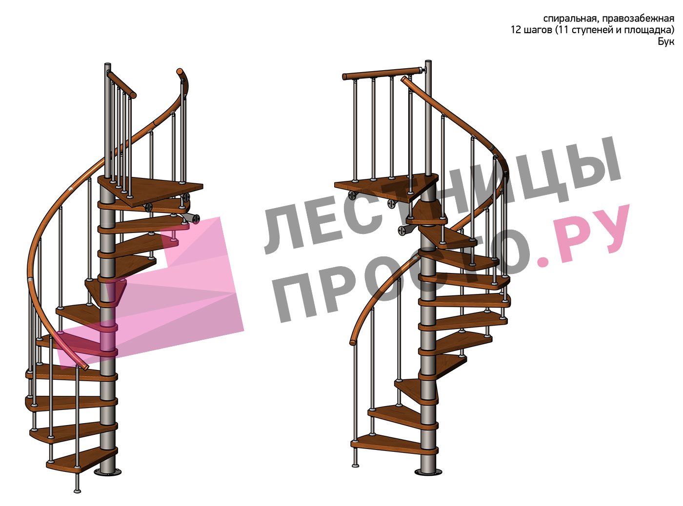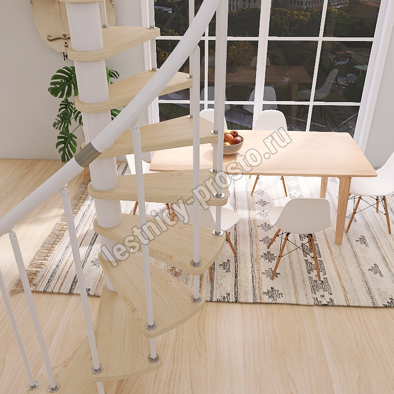 Винтовая лестница Prosto Spiral White D140см, h260.5-304.6 см, бук