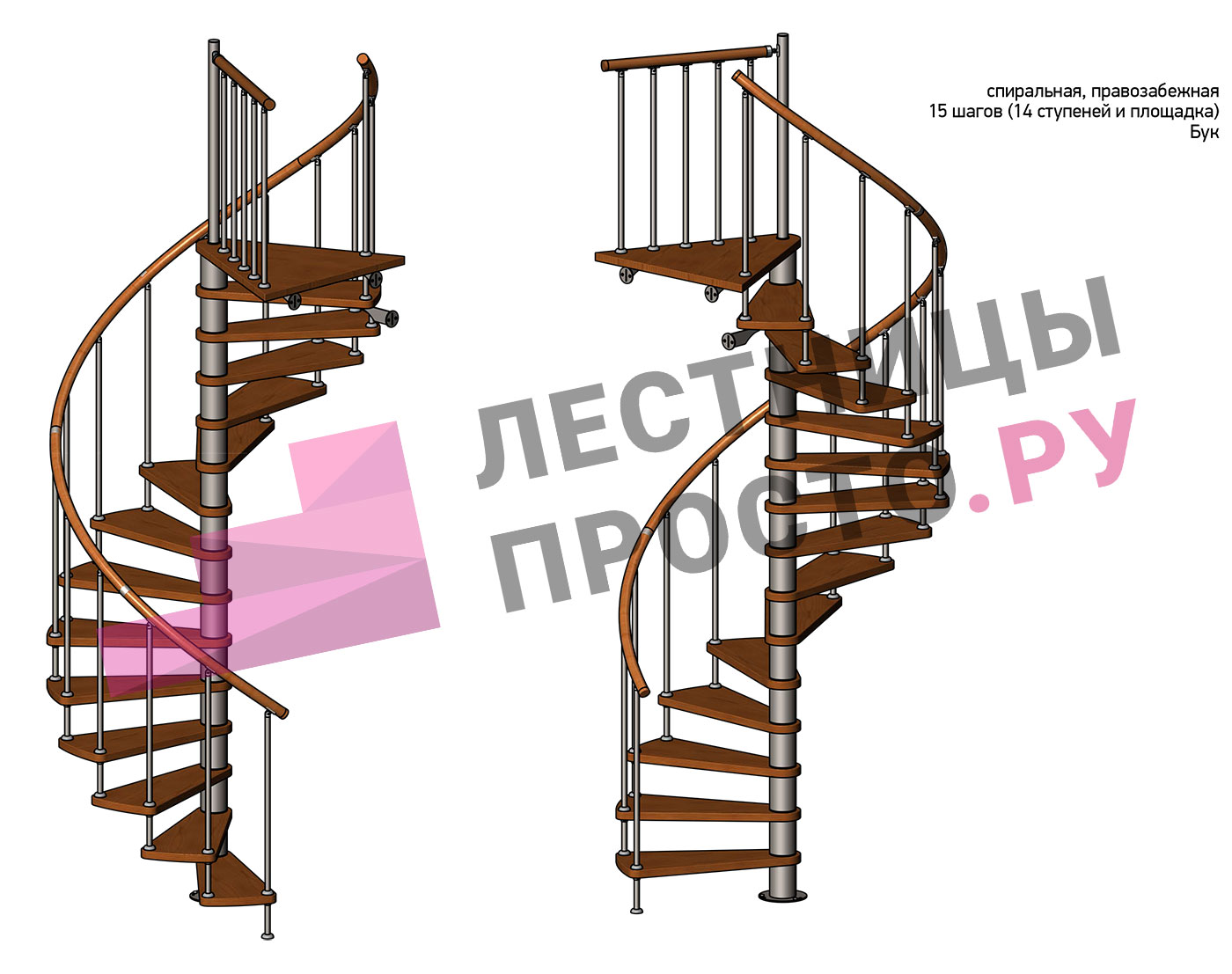 Винтовая лестница Prosto Spiral White D160см, h325.7-369.8 см, бук