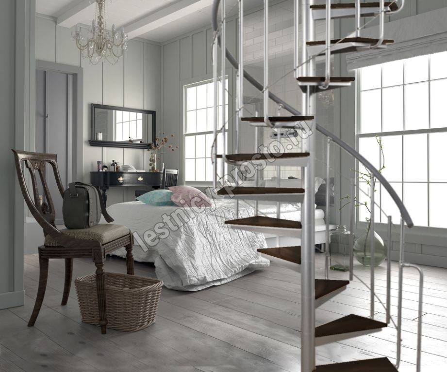 Винтовая лестница Solo vertical серебро, медовая ольха