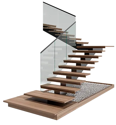 Отделка бетонной лестницы с площадкой в частном доме LP-1-16
