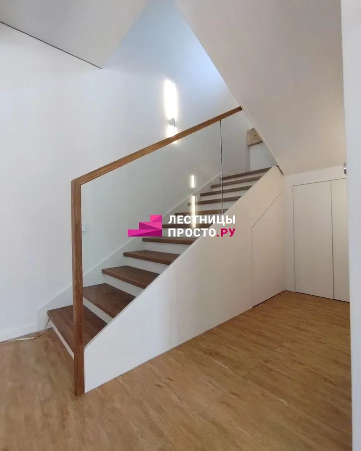 Облицовка бетонной лестницы дуб/керамогранит/стекло и освещение лестницы LP-1-53